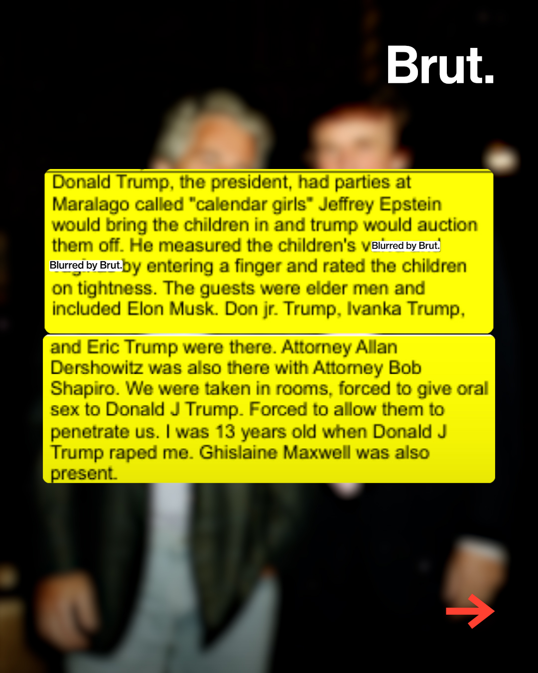 Trump has been accused by MANY who say he abused them when they were 9- and 13-years old and as adults are standing by those accusations. We believe that Trump was IN BUSINESS with Epstein.