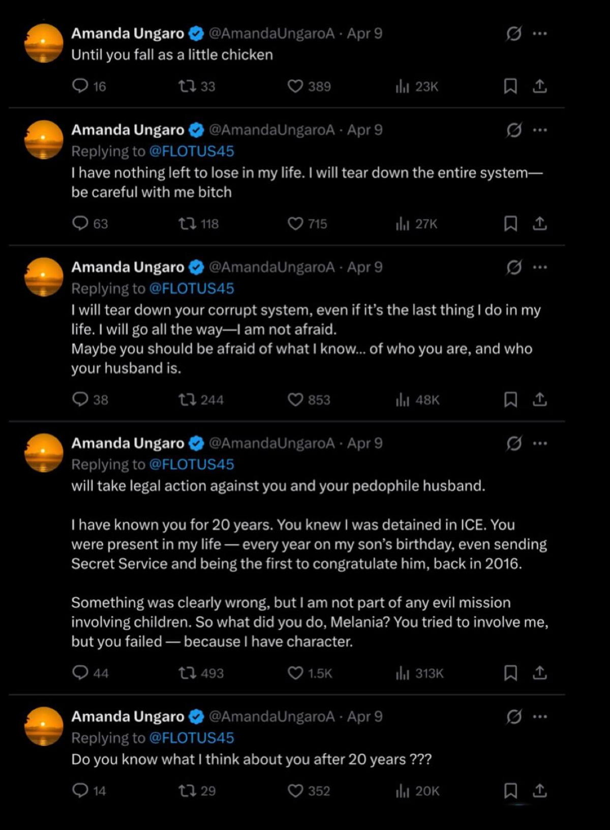 Ex-wife and victim of Paolo Zampolli, Amanda Ungaro has been tweeting at the first lady that she will reveal who MELANIA really is and who Trump really is.
